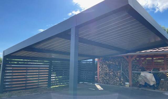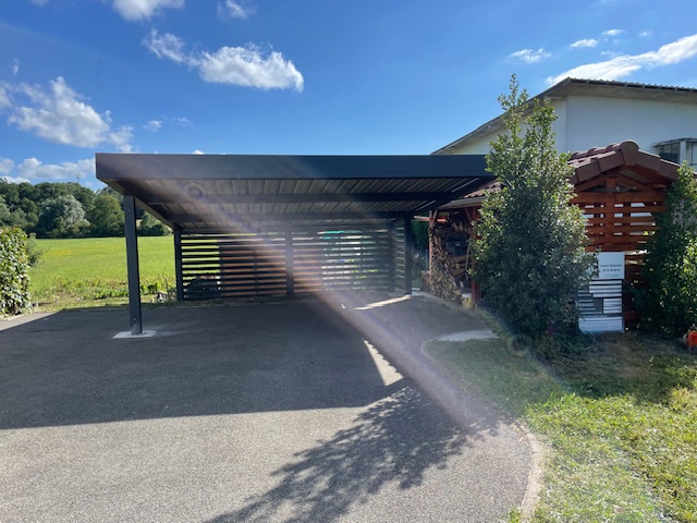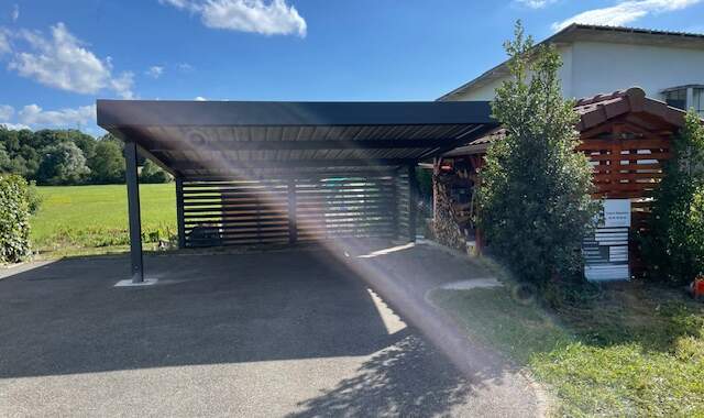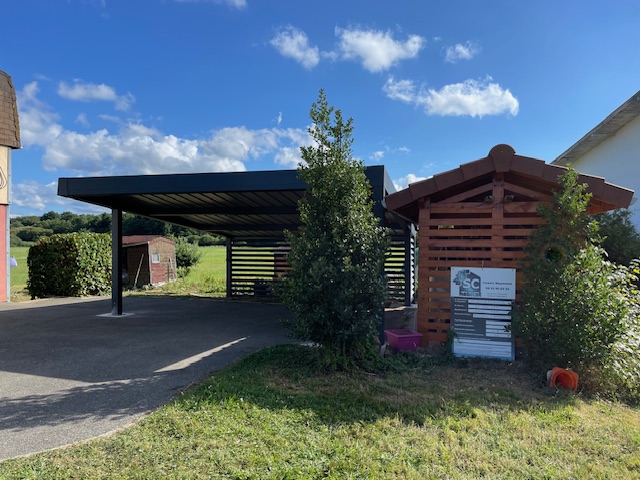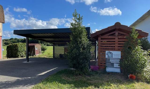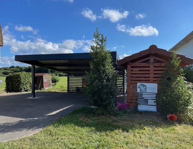 À Fontenelle, petite commune rurale du Territoire de Belfort dans la région Bourgogne-Franche-Comté (pop. environ 135 habitants, à 7 km de Belfort), SC Habitat a réalisé un carport en aluminium thermolaqué RAL 7016 sur mesure, autoportant, reposant sur quatre massifs en béton pour une stabilité absolue, quelles que soient les conditions climatiques locales. L’élégante teinte gris anthracite s’accorde harmonieusement avec les constructions environnantes tout en conférant à la structure une allure moderne et sobre.