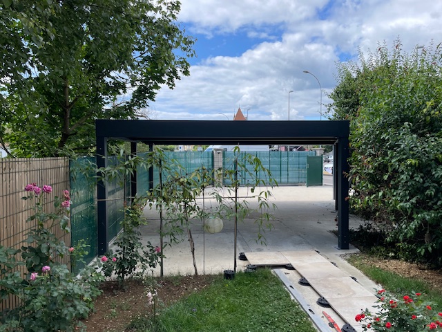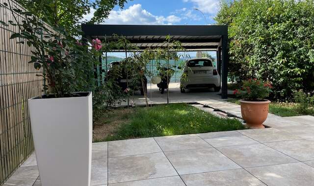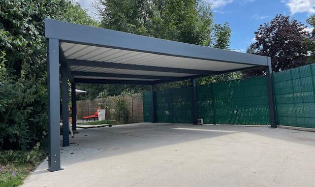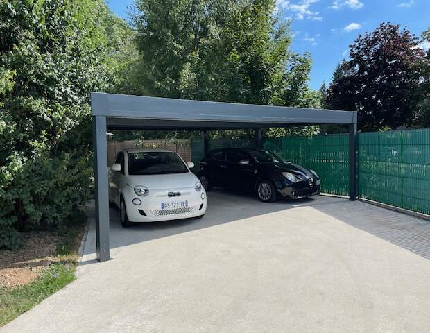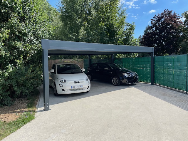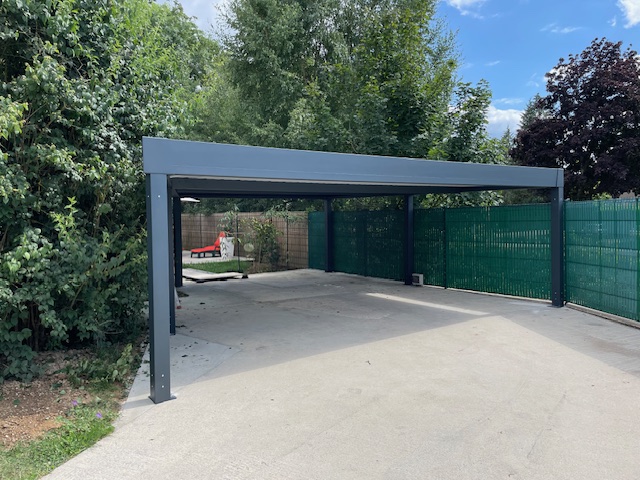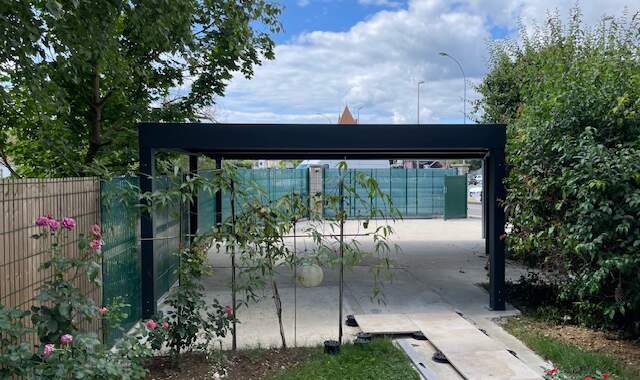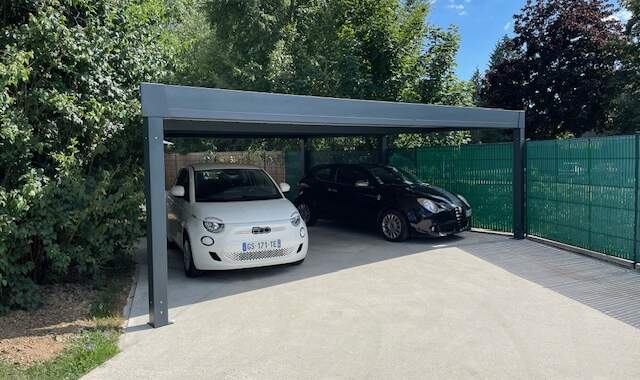 À Valdoie, SC Habitat a imaginé et installé un carport en aluminium RAL 7016 sur mesure, solidement implanté grâce à six massifs en béton, garantissant une stabilité exceptionnelle, même face aux caprices du climat local. Ce gris anthracite moderne offre une esthétique sobre et contemporaine, en parfaite harmonie avec les constructions environnantes.