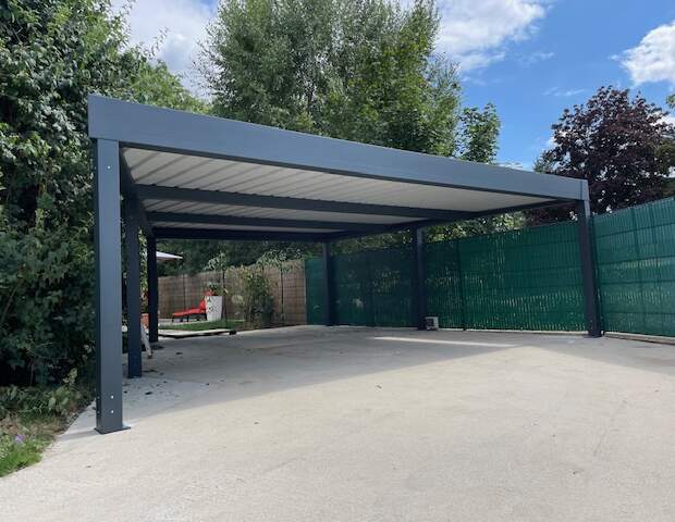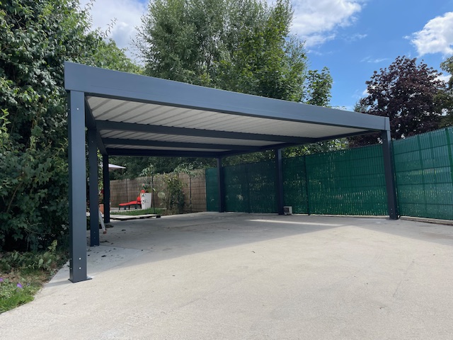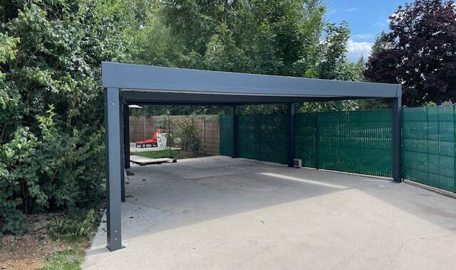 Ce carport se distingue par sa toiture en bac acier, un matériau apprécié pour sa résistance, longévité et sa capacité à assurer une excellente protection contre les intempéries, tout en demandant très peu d’entretien. Sa conception permet une évacuation efficace des eaux pluviales, assurant une durabilité accrue et une qualité constante.