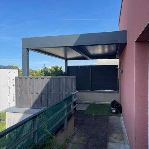 SC Habitat a récemment installé une pergola aluminium RAL 7016 sur mesure, fixée directement contre la façade d’un immeuble au 4ᵉ étage, sur la terrasse privative de l’appartement. Cette pergola sur mesure, conçue en aluminium thermolaqué gris anthracite (RAL 7016), apporte une protection solide et esthétique, parfaitement intégrée à l’architecture existante. Grâce à sa structure pensée pour les espaces en hauteur, cette installation offre une solution élégante pour créer un espace extérieur abrité, même dans un contexte urbain ou en étage, répondant aux attentes des habitants souhaitant profiter pleinement de leur terrasse.