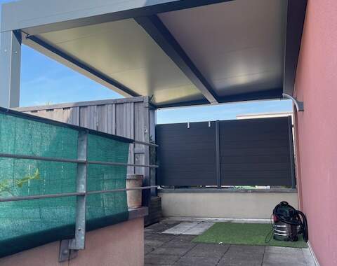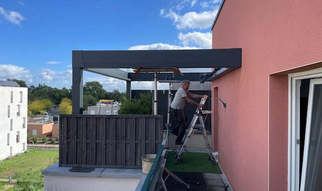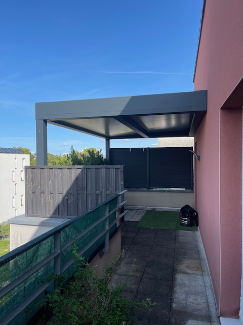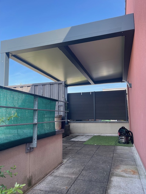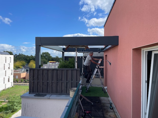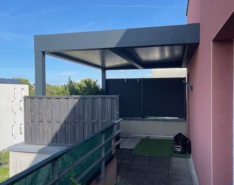 SC Habitat a récemment installé une pergola aluminium RAL 7016 sur mesure, fixée directement contre la façade d’un immeuble au 4ᵉ étage, sur la terrasse privative de l’appartement. Cette pergola sur mesure, conçue en aluminium thermolaqué gris anthracite (RAL 7016), apporte une protection solide et esthétique, parfaitement intégrée à l’architecture existante. Grâce à sa structure pensée pour les espaces en hauteur, cette installation offre une solution élégante pour créer un espace extérieur abrité, même dans un contexte urbain ou en étage, répondant aux attentes des habitants souhaitant profiter pleinement de leur terrasse.